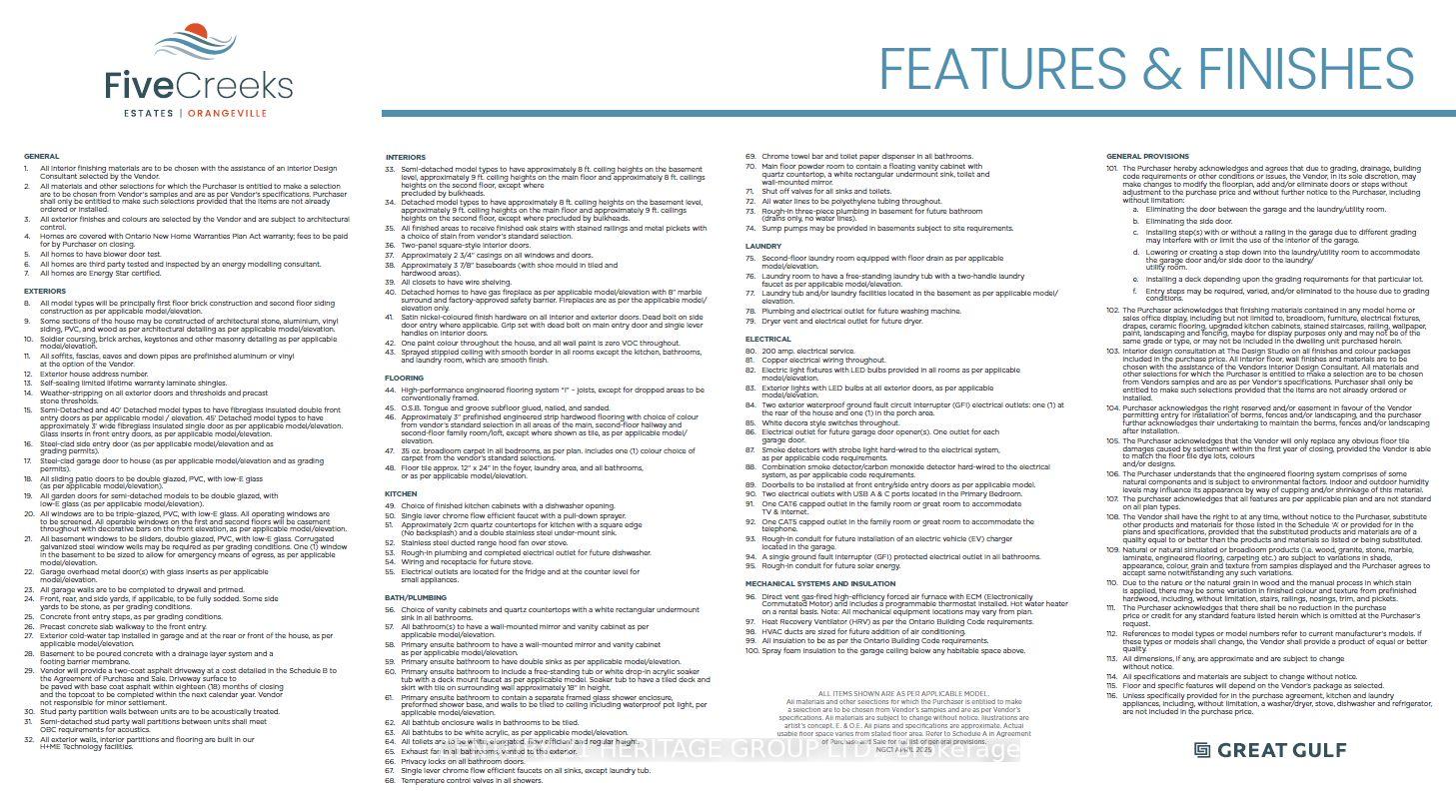 Offered by the Builder. Welcome to Five Creeks by Great Gulf - where luxury, nature, and modern living come together. This brand-new Fendley Model (Elevation B) sits on a premium ravine lot with a walkout to deck, offering sweeping natural views and the rare opportunity for a walkout basement. Designed with over 2,230 sq ft of elegant living space, this 4-bedroom, 4-bath detached home showcases 9-ft ceilings, an inviting gas fireplace, and sun-filled, open-concept living areas that seamlessly connect to the outdoors. The chef-inspired kitchen boasts quartz countertops, extended cabinetry, a stainless range hood, and a bright breakfast area with a convenient walk-in pantry and walkout to the deck overlooking the ravine - perfect for family gatherings or morning coffee. Upstairs, the primary retreat features his and hers walk-in closets, a freestanding tub, glass-enclosed shower, and double-sink vanity. Each secondary bedroom offers generous space, ensuite or semi-ensuite access, and walk-in closets - ideal for growing families. Built by one of Canada's most award-winning builders, Great Gulf, this home delivers quality craftsmanship and energy efficiency at every turn: triple-pane Energy Star windows, HRV air system, 200 AMP electrical service, rough-in EV charger, and full Tarion warranty for lasting peace of mind. Experience the privacy and tranquility of ravine living in Orangeville's newest master-planned community, just minutes from schools, shopping, and major highways. Walkout, finished basement available. A rare chance to own a luxury new-build backing onto nature - where every detail enhances comfort, connection, and lifestyle.